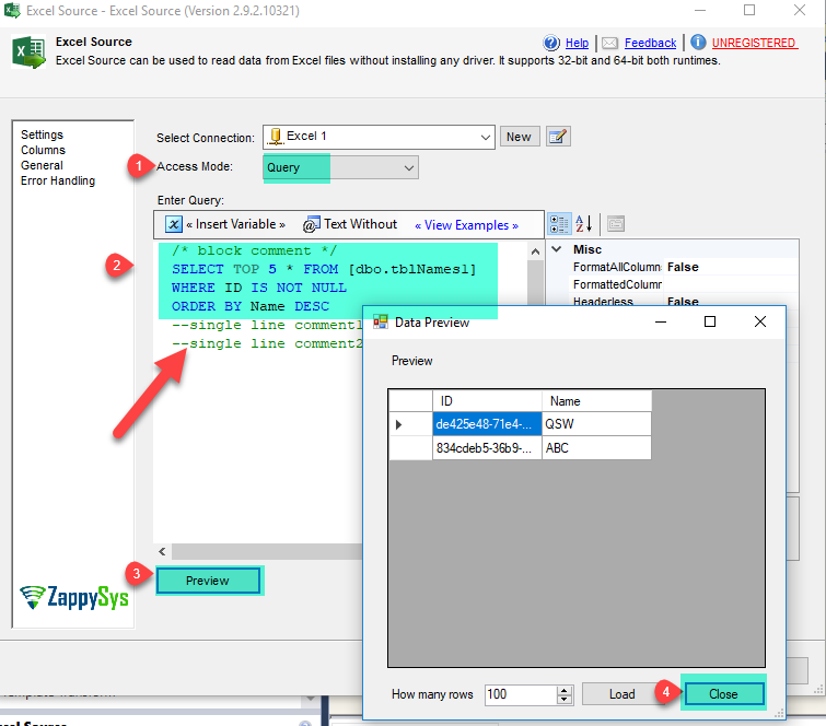 - You can do various other things also in the query mode, find our various example here to read Excel Workbook using SQL Query mode.